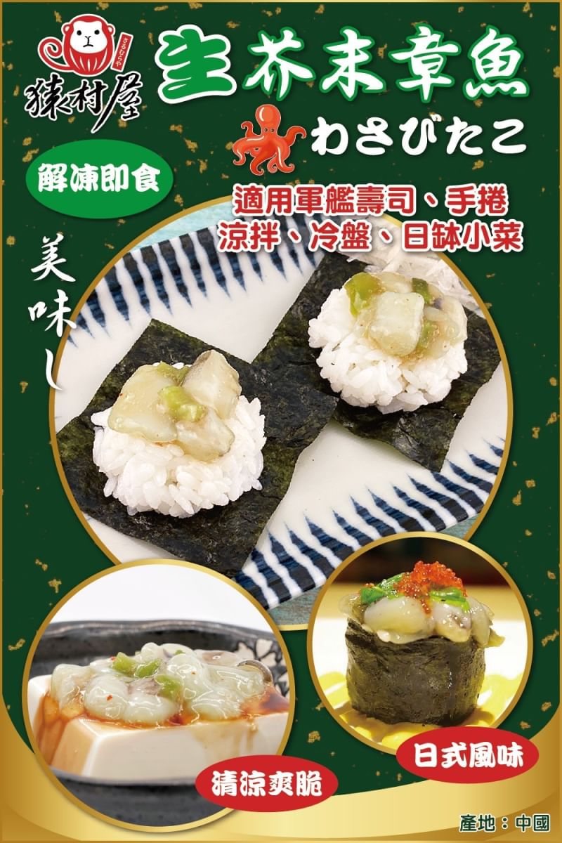 使用新鮮章魚及清脆爽口的山蜇菜,搭配特調日式芥末醬。