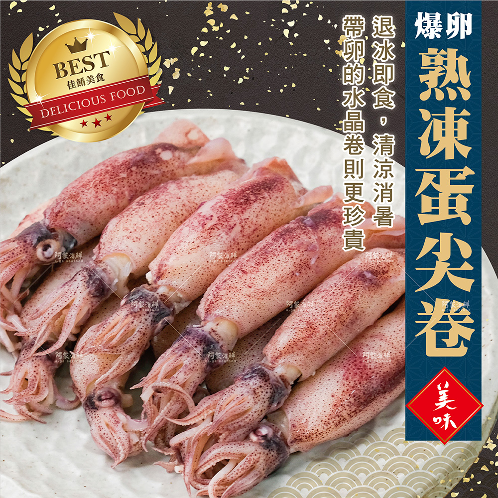 【阿家海鮮】船凍鮮甜蛋小卷200g±10%/包 選自澎湖的新鮮小卷,每隻飽滿扎實的蛋卵香氣,將在您的口中散發 醬燒、三杯都很推薦!!新鮮又美味,忍不住一口接一口