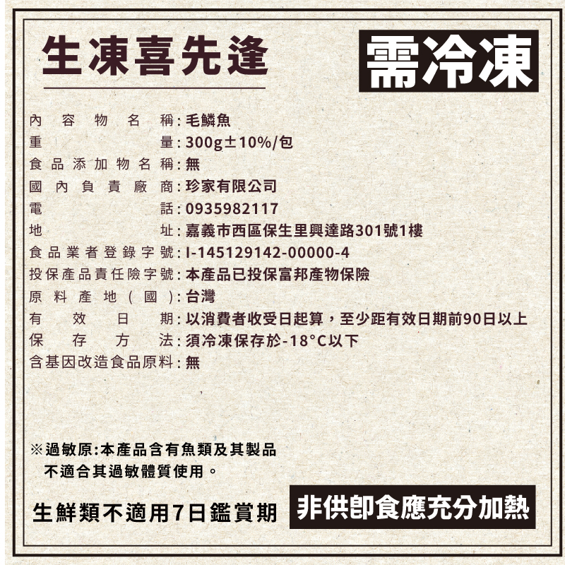 ※過敏原資訊:本產品含魚類,不適合其過敏體質者食用。