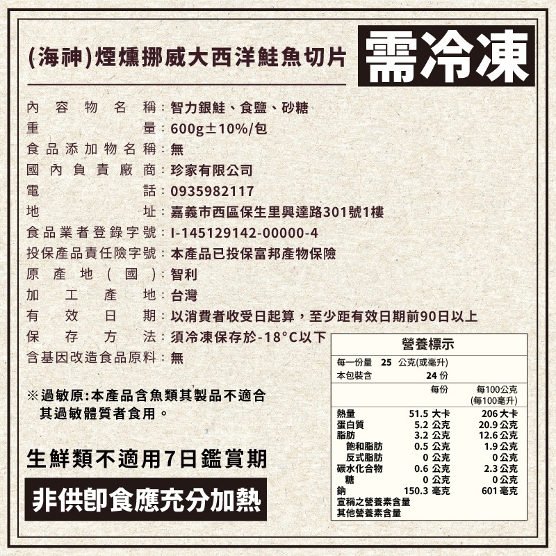 【阿家海鮮】海神煙燻鮭魚切片(600g±10%/包)