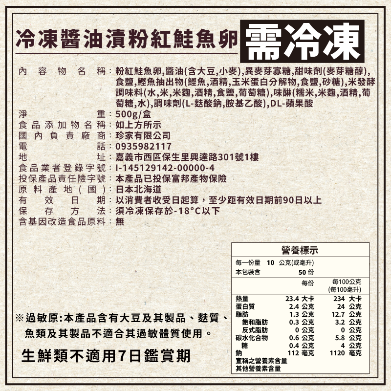 【阿家海鮮】日本釧鹿丸北鱒鮭魚卵500g±5%/盒