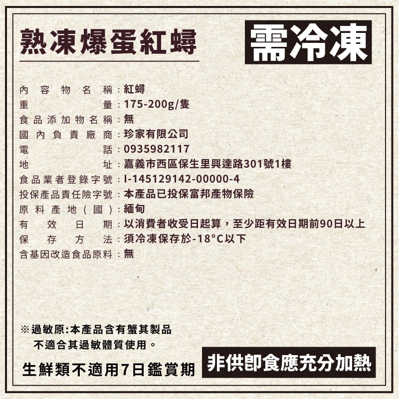 一般家庭冰箱,冷凍僅約-18°C,建議購買後盡早食用。有別於業務型-24°C冷凍設備條件,將無法長期儲存。