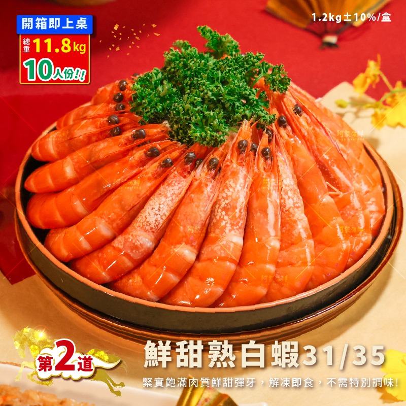 2.鮮甜熟白蝦31/35(1.2kg±10%/盒)