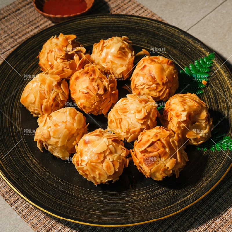 酥到會掉屑!彈到會回彈的海味小炸彈! 外面是一層 金黃酥脆杏仁片, 裡面是 真材實料墨魚+蝦仁打製的Q彈蝦漿。 ✨先是杏仁香氣炸開 ✨接著墨魚丸的彈+蝦子的鮮直接衝上來! 外酥、內彈、鮮味滿滿, 整顆就是 海味濃縮炸彈!